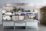 Accessories are made of stainless steel, e.g. hoods, shelves, handles adding a plus of light and elegance to the kitchen. |