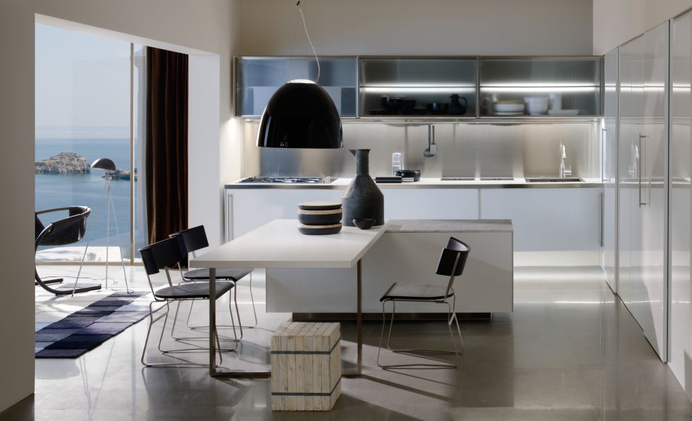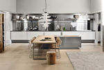 As a "furnishing" kitchen, Spatia assures a wide range of materials and finishing options perfectly fitting the adjacent homerooms and becoming the centre of it. |