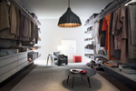 The panels can also be used in conjunction with the Made to Measure wardrobe, allowing to cover walls and also to create actual environment, and are outfitted with a vast selection of accessories for hanging and storage, and ground elements which can be simple or lighten. The shelves have two types of coupling in wood or cast aluminum. |